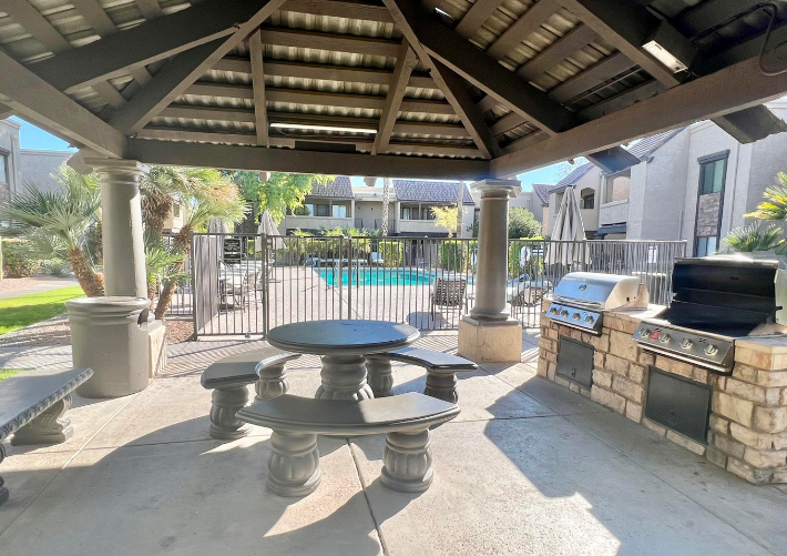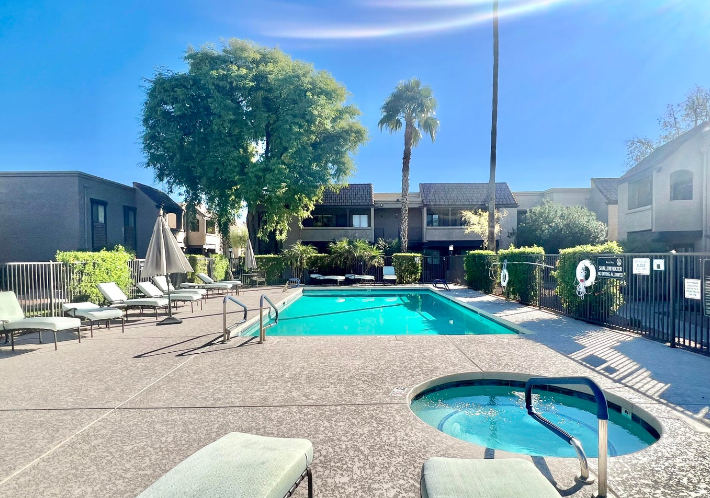 Remodeled ground floor 1 bedroom in Bella Vita's gated community. Step inside and be met with all luxury vinyl plank throughout, great kitchen appliances and a stacked washer/dryer. Enjoy your patio space which overlooks the pool. The community includes a pool and spa, community gym and clubhouse. Close to the 101 freeway, Scottsdale Community College, and Downtown Scottsdale shopping district!