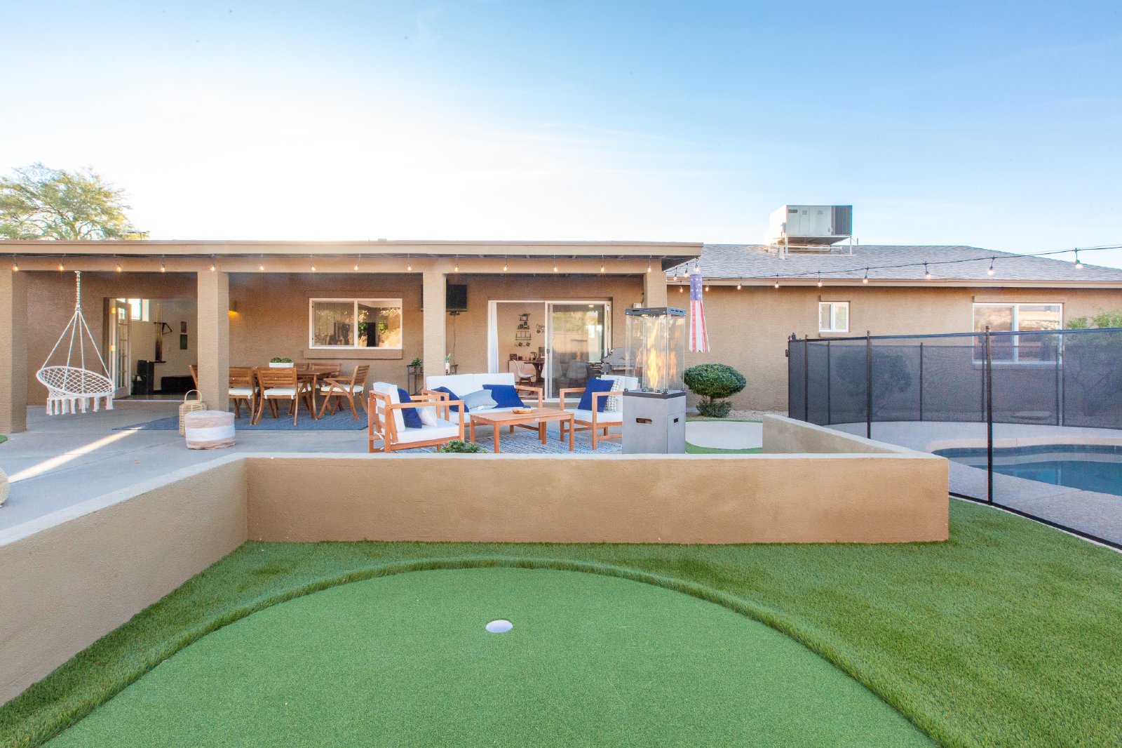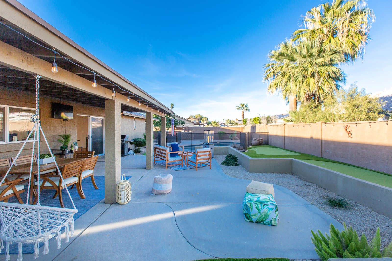 Spend your winter in this fully furnished, 3 bedroom/2 bathroom dream home in ever popular North Scottsdale. Relax in the cool evenings in the heated pool or enjoy your time sitting next to the fire pit as you roast marshmallows. Want to practice on your golf stroke before you head to the links? Perfect that putt in the backyard putting green. And. you cannot beat the location! Just down the street you will find amazing shopping at Kierland Commons or the Scottsdale Quarter. So much to do locally! Want to stay in? Enjoy the property comfy feel with all the accommodations of your personal home, including a game room! 30-Day Minimum Rental. (Rates $4,965 Jan-April) CAPS on Utilities: Elec $75, Water $50.
