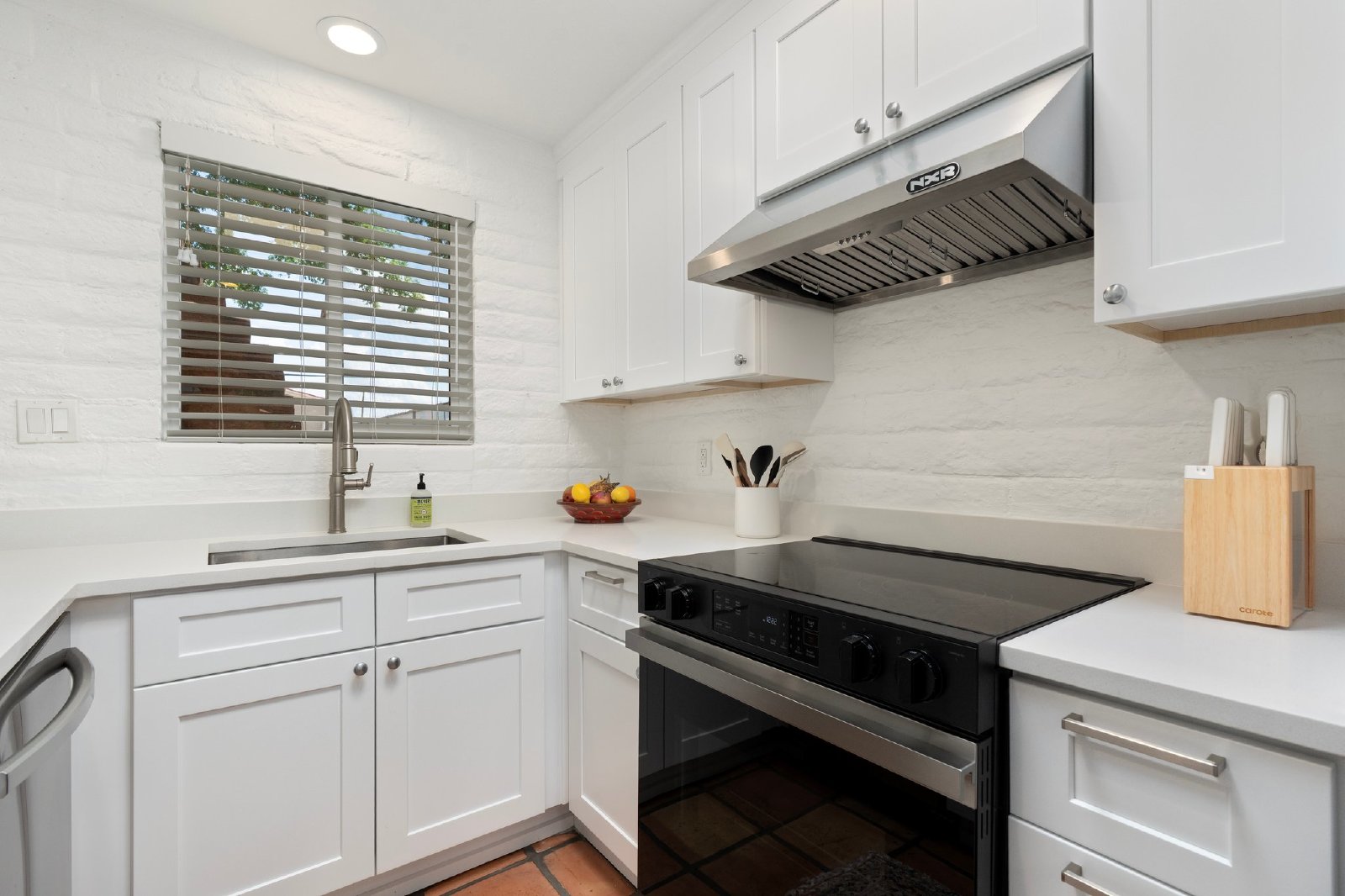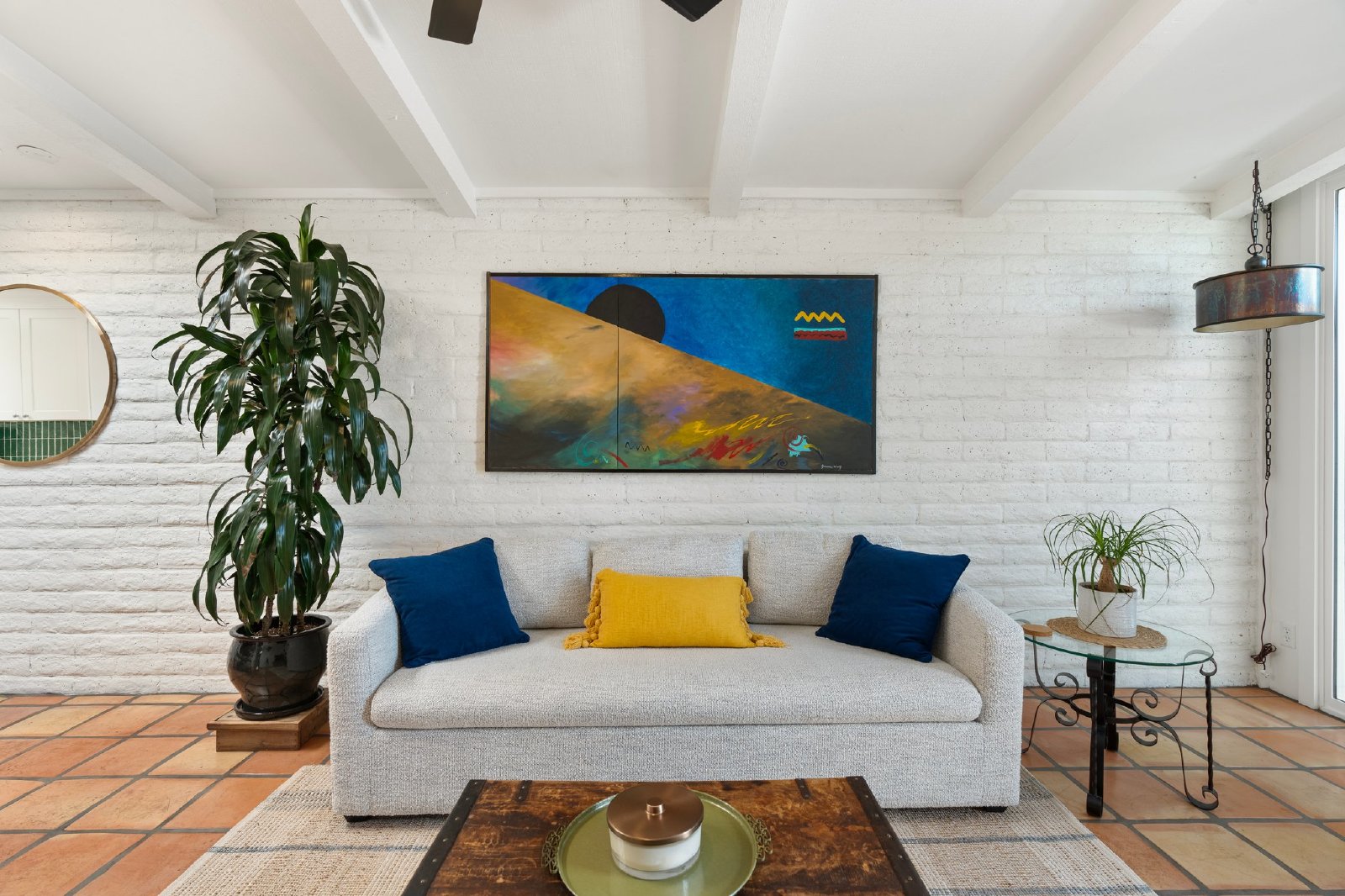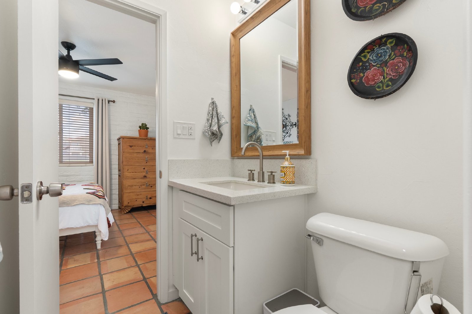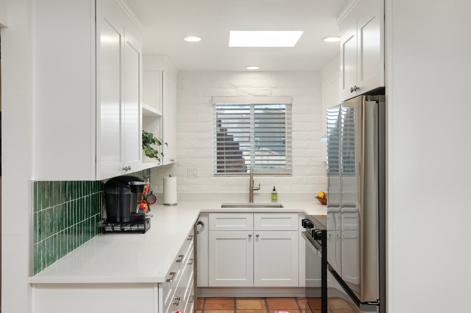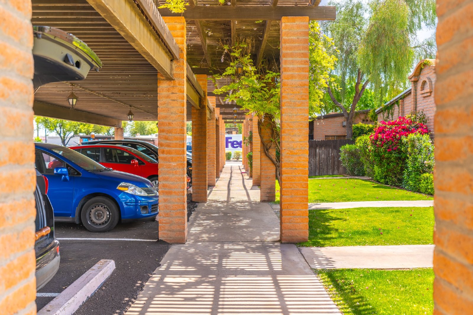 Charming Spanish-Style Townhouse Near Biltmore and Arcadia. This beautifully maintained townhouse blends Spanish influence with classic details. Nestled just minutes from Biltmore and Arcadia districts, this home welcomes you with abundant natural light, timeless Saltillo tile flooring, exposed brick walls, and rustic wooden beams in the open-concept living and dining area. The kitchen features quartz countertops, stainless steel sink, and comes fully equipped with all appliances. The spacious primary suite offers generous storage. Energy-efficient upgrades include roof and skylights and dual-panel windows. Step outside to your private patio perfect for relaxing or entertaining.